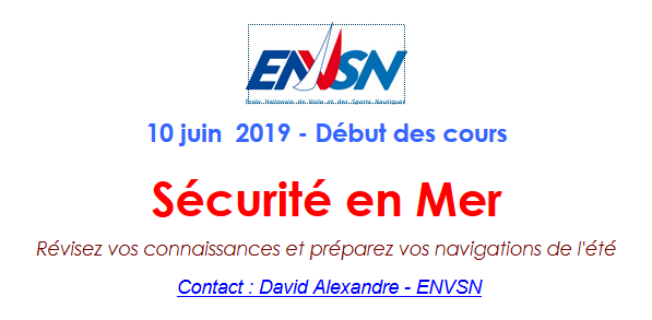 Préparez vos navigations pour cet été en participant au MOOC (Massive Online Open Course) sécurité en mer , cours gratuit proposé de nouveau par l'ENVSN.